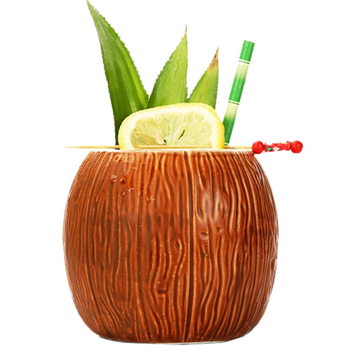 Ceramic Mug Coconut Shape Tiki Mug For Gifts Cups And Mugs Collection New Year Decoration-Brown Color